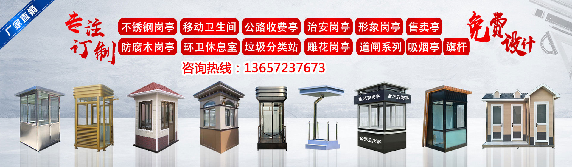 武漢金藝安金屬制品有限公司(簡(jiǎn)稱JYA)是一家專業(yè)從事設(shè)計(jì)、生產(chǎn)制作加工、銷售及售后服務(wù)一體化,為客戶提供建筑/交通/市政配套設(shè)施一站式服務(wù)企業(yè)。主營:不銹鋼崗?fù)ぃ蛋鄭復(fù)ぃ蜗髰徟_(tái),防彈崗?fù)ぃ紘娖釐復(fù)ぃ伟矋復(fù)ぁ⒕坝^崗?fù)ぃ圬浲ぃ\噲?chǎng)收費(fèi)亭、高速公路收費(fèi)亭,不銹鋼旗桿,錐型旗桿,電動(dòng)旗桿等系列產(chǎn)品。廣泛應(yīng)用于:學(xué)校,廣場(chǎng),體育場(chǎng)館,軍隊(duì),酒店,企業(yè)單位,小區(qū)停車場(chǎng),學(xué)校,醫(yī)院,工廠、市政交通收費(fèi)、平安城市管理、景觀環(huán)境美化等領(lǐng)域。 我們不斷發(fā)展壯大,秉承“品質(zhì)、信譽(yù)、服務(wù)”的經(jīng)營理念參與市場(chǎng)競(jìng)爭(zhēng),堅(jiān)持高技術(shù)、高品質(zhì)、高效率的方針,結(jié)合用戶需求,不斷推出新產(chǎn)品,樹立品牌優(yōu)勢(shì)。擁有經(jīng)驗(yàn)豐富的專業(yè)設(shè)計(jì)師和質(zhì)量過硬的施工,銷售服務(wù)網(wǎng)絡(luò)遍及全國各地。 我們的宗旨:誠實(shí)守信, 追求卓越, 客戶至上。今后公司將一如既往,腳踏實(shí)地,與用戶攜手合作,共創(chuàng)輝煌!...